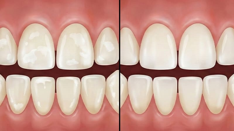 歯を削らずに白い斑点(ホワイトスポット)を目立ちにくくする方法です。薬剤を歯に浸透させ、歯質への負担を抑えながら白さを整えます。